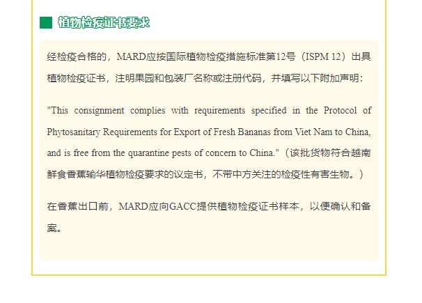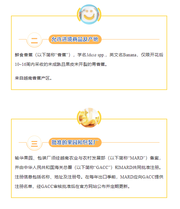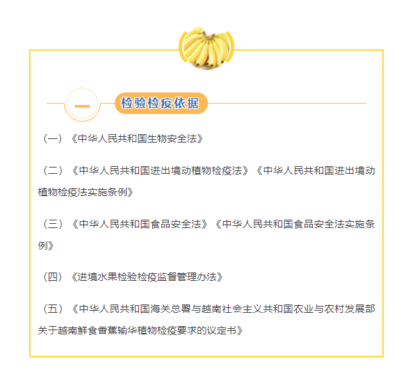 詳見:海關(guān)總署公告2022年第108號(hào)(關(guān)于進(jìn)口越南鮮食香蕉植物檢疫要求的公告)