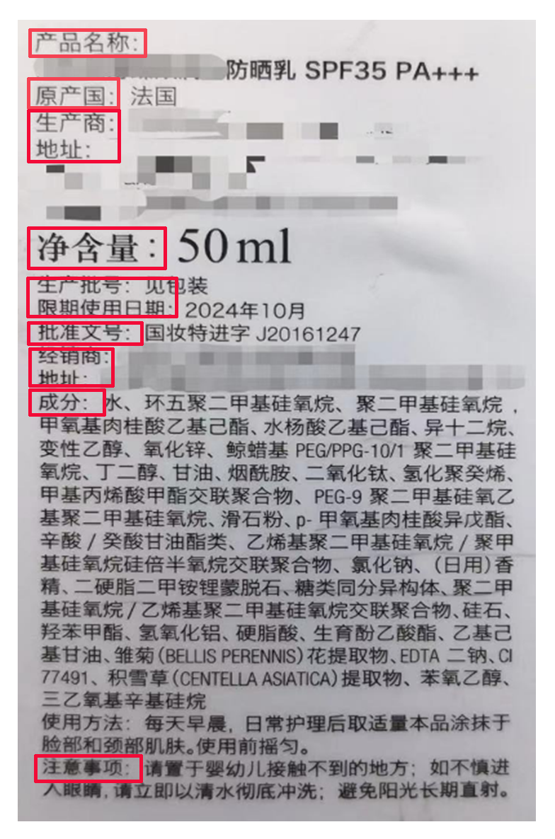進(jìn)口化妝品標(biāo)簽宜標(biāo)注如下內(nèi)容: