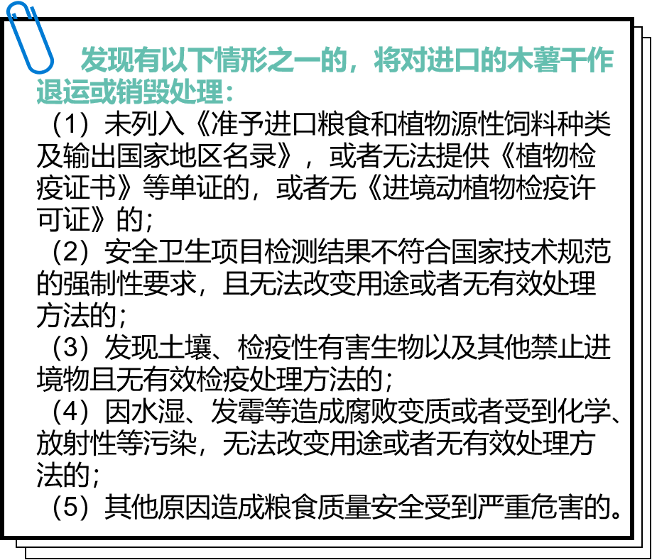 由口岸海關(guān)對(duì)進(jìn)境木薯干實(shí)施現(xiàn)場(chǎng)檢驗(yàn)檢疫。