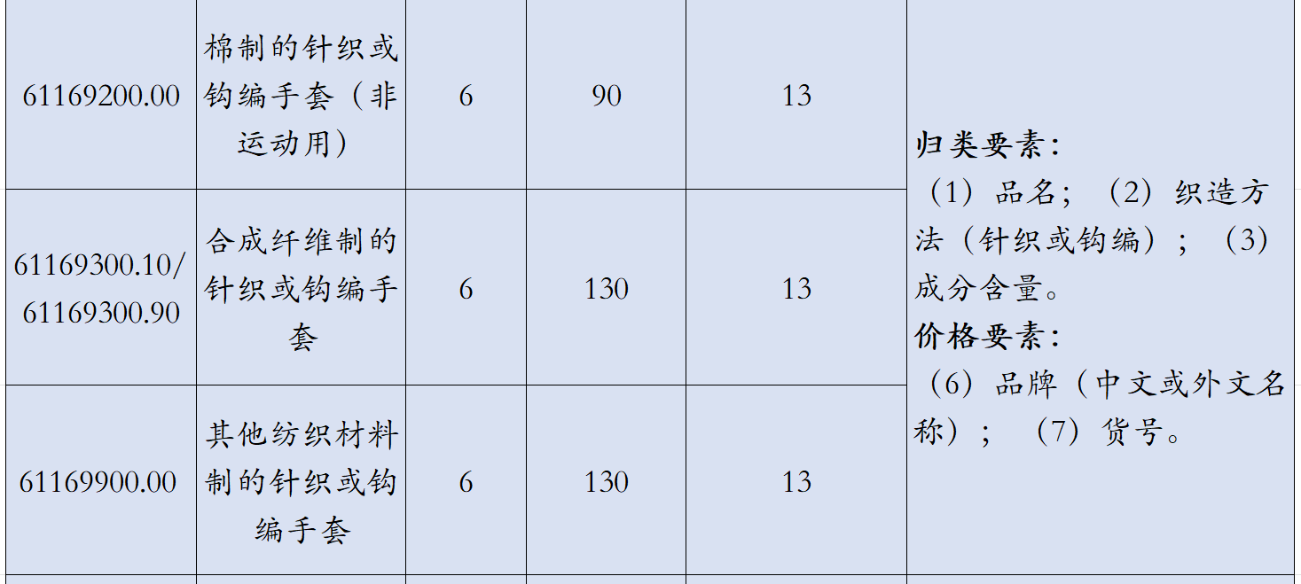 手套可以在勞動過程中對手部進(jìn)行保護(hù),應(yīng)用非常廣泛,根據(jù)不同工作場景有不同保護(hù)和幫助工作的手套,比如防滑耐磨手套、絕緣手套、焊接手套、耐油耐腐蝕手套、無塵手套和消防手套等,其制作材料主要有皮革、棉線、PVC、橡膠等,可能涉及的歸類及規(guī)范申報(bào)要素如下: