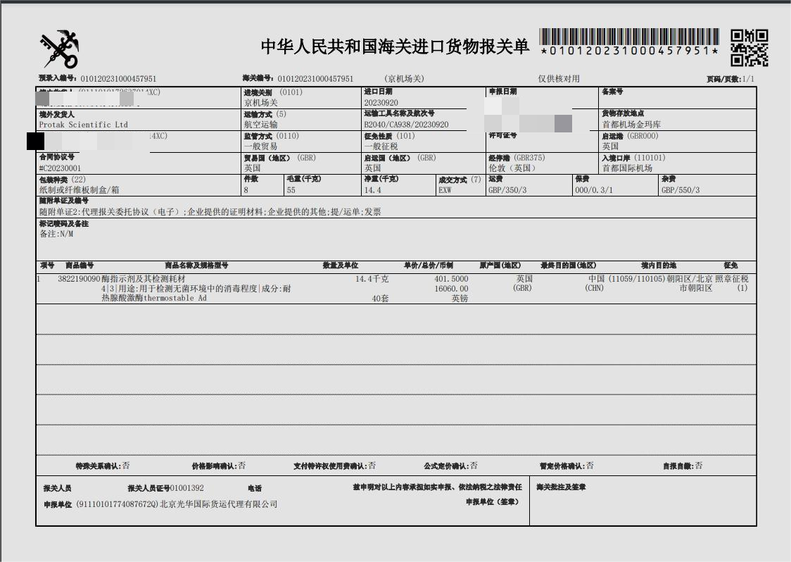 4.分揀生物試劑并貼標(biāo),安排進口申報,稅金支付等,完成進口清關(guān)后將貨物配送至各大醫(yī)院或者研究所等。
