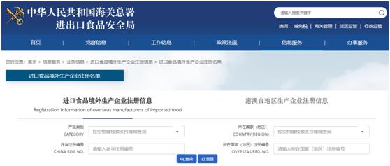 根據(jù)已于今年1月1日起實施的《中華人民共和國進(jìn)口食品境外生產(chǎn)企業(yè)注冊管理規(guī)定》(中華人民共和國海關(guān)總署第248號令)相關(guān)要求,向中國境內(nèi)出口食品的境外生產(chǎn)、加工、貯存企業(yè)應(yīng)當(dāng)獲得海關(guān)總署注冊,其中18類產(chǎn)品(肉與肉制品、腸衣、水產(chǎn)品、乳品、燕窩與燕窩制品、蜂產(chǎn)品、蛋與蛋制品、食用油脂和油料、包餡面食、食用谷物、谷物制粉工業(yè)產(chǎn)品和麥芽、保鮮和脫水蔬菜以及干豆、調(diào)味料、堅果與籽類、干果、未烘焙的咖啡豆與可可豆、特殊膳食食品、保健食品)需由所在國家(地區(qū))主管當(dāng)局向海關(guān)總署推薦注冊。